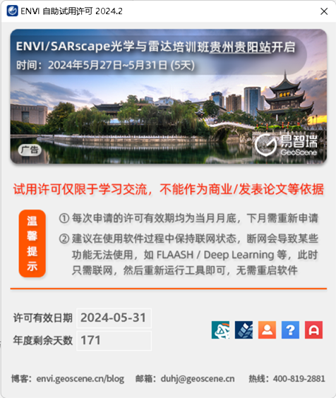 官方博客:ENVI 6.0 自助试用许可开放申请 - ENVI-IDL技术殿堂 - 博客园 (cnblogs.com)