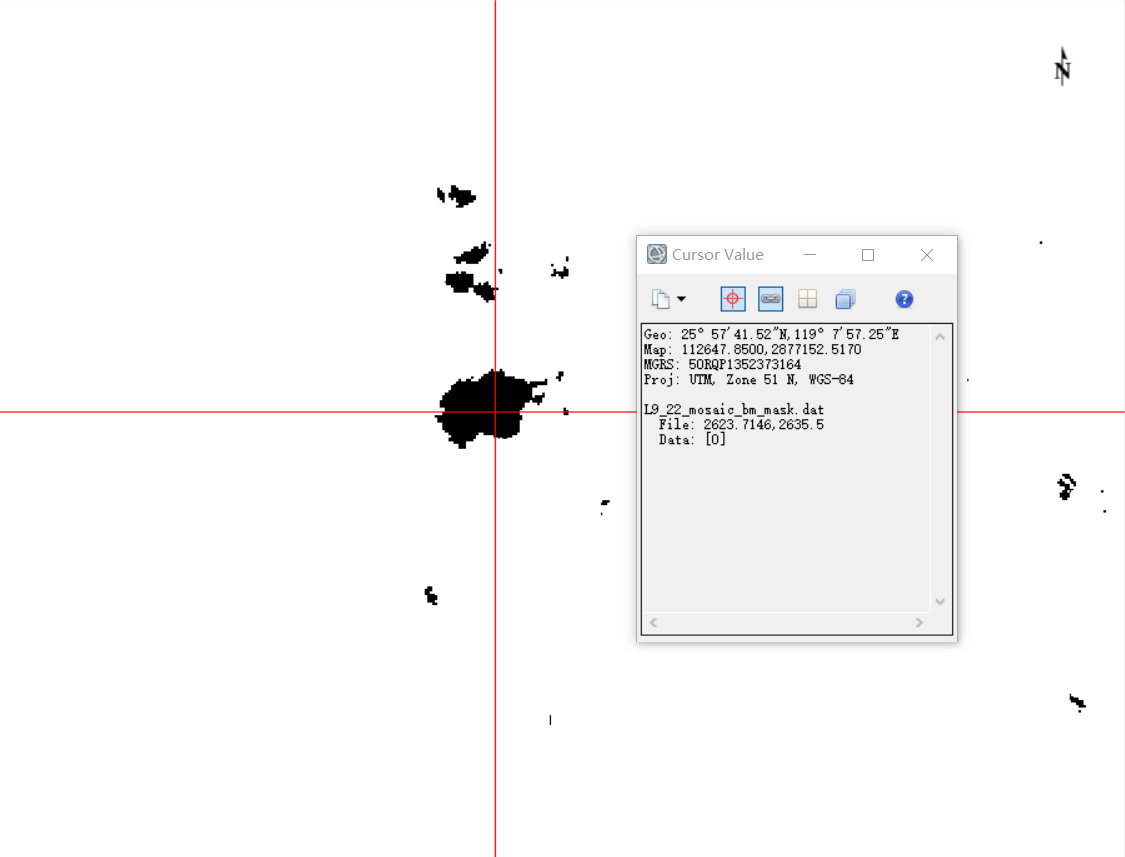 此时返回最初的界面,选择好输出文件的路径之后,再点击【OK】即可。创建的掩膜如下所示,掩膜中云层部分对应的值为0。